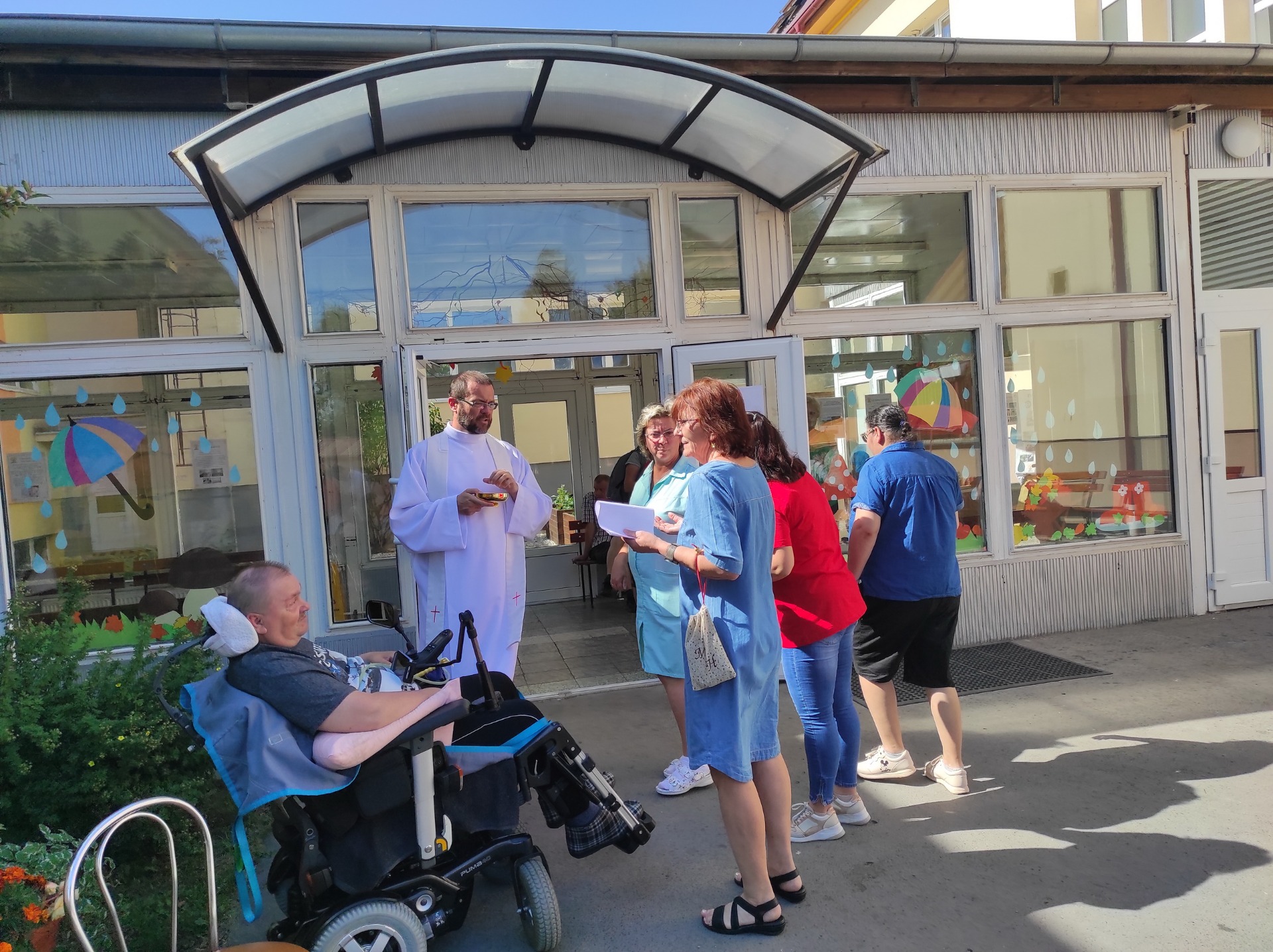 Dňa 8.9.2023 sme otvorili brány nášho zariadenia širokej verejnosti prostredníctvom akcie "Deň rodiny". Nálada bola super a počasie nám prialo, už od rána sa varil výborný kotlíkový guláš, chystali sa dobroty a rôzne aktivity pre klientov a návštevníkov. Akciu sme začali tradične svätou omšou, ktorú celebroval náš pán farár. Nasledoval príhovor pani riaditeľky a bohatý program do neskorých hodín. Sociálne pracovníčky sprevádzali návštevníkov po zariadení a trpezlivo odpovedali na všetky otázky. Inštruktori sociálnej rehabilitácie a klienti pripravili tvorivé dielne, kde si každý mohol vyskúšať prácu s hlinou, vyrobiť košík, potlačiť šálku. Nechýbali športovo zábavné aktivity ako stolný futbal, šípky, šach, detské kino, maľovanie na tvár a fotokútik plný bláznivých rekvizít. Do spevu všetkých naladilo vystúpenie speváckej skupiny Volkovčanka. Neuveriteľnú trpezlivosť a lásku k zvieratám nám predviedla Karolínka so svojím psíkom Amy a svojím úžasným "dogdancingom. Počas bohatého programu nebol nikto hladní ani smädní. Podávali sa čapované nápoje, guláš a dokonca popcorn. Podvečer patril kapele "Atomic Cover", ktorá nás všetkých roztancovala vďaka známym hitom. Mladí, starí, veľkí i malí, všetci si prišli na svoje! Veľmi pekne ďakujeme všetkým, ktorí prispeli k tomu, aby sa táto akcia mohla uskutočniť. Ďakujeme našim dobrovoľníkom z radov zamestnancov a praktikantov, Nadácii EPH, ktorá túto akciu podporila zamestnaneckým grantom, konkrétne vďaka Jurajovi- pracovníkovi Slovenských elektrárni Mochovce. Sme radi, že život našich klientov im nie je ľahostajný. Bez ich zanietenia a finančnej podpory by nebolo možné s našimi klientmi prežiť takýto krásny deň, plný spoločných zážitkov. Bolo krásne sledovať, ako sa klienti bavia a užívajú si svojich rodinných príslušníkov a priateľov. Ďakujeme každému jednému návštevníkovi za prítomnosť a za podporu - pre našich klientov to znamená veľmi veľa.